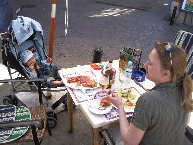 Am Vormittag (11:30) startete unser Flieger von Dresden nach Ibiza. Der Flug mit den Kindern verlief problemlos, Adrian hat es sehr gefallen, Belana fand nur den Gurt manchmal nicht so toll. Nach der Ankunft in der Hauptstadt Ibiza (Eivissa) erwarteten uns noch 30 min Transfer mit einem Kleinbus nach Santa Eularia zu unserem Hotel – dem Tropical Garden.